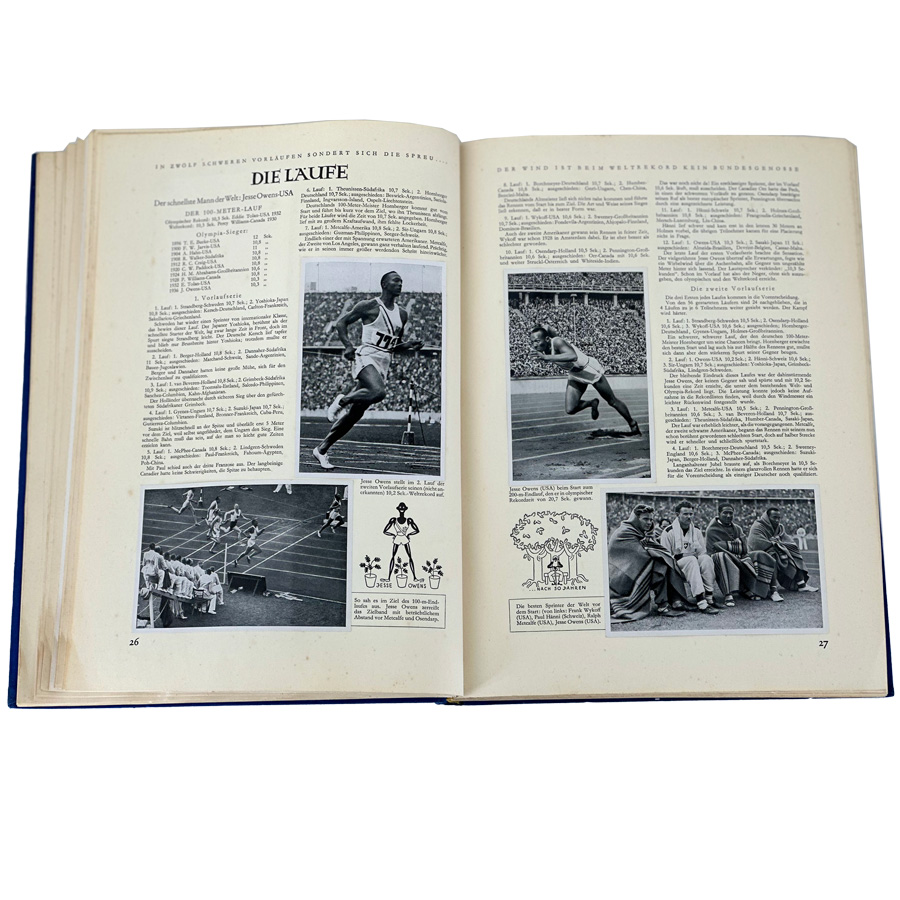 This Nazi German Original "Olympia" 1936 Olympics Cigarette Card Album is a rare original that was published after the 1936 Olympics held in Berlin, Germany shortly before the 2nc World War. It consists of 212 black & white photographs in 127 pages. This album covers the events of the famous 1936 Summer Olympics in which the U.S.'s Jesse Owens took 4 gold medals, much to Hitler's chagrin!