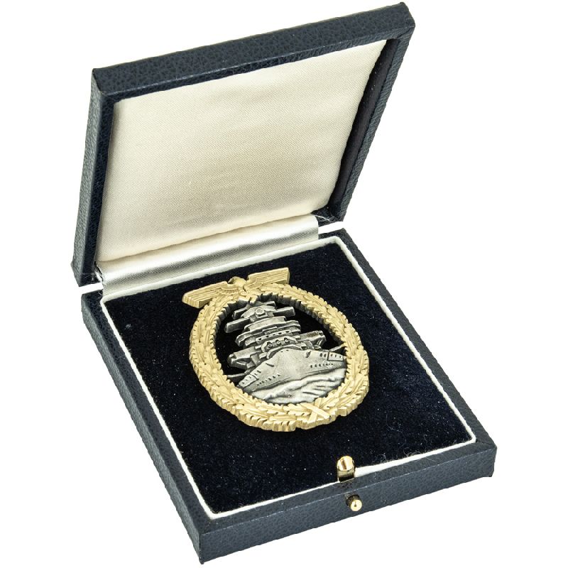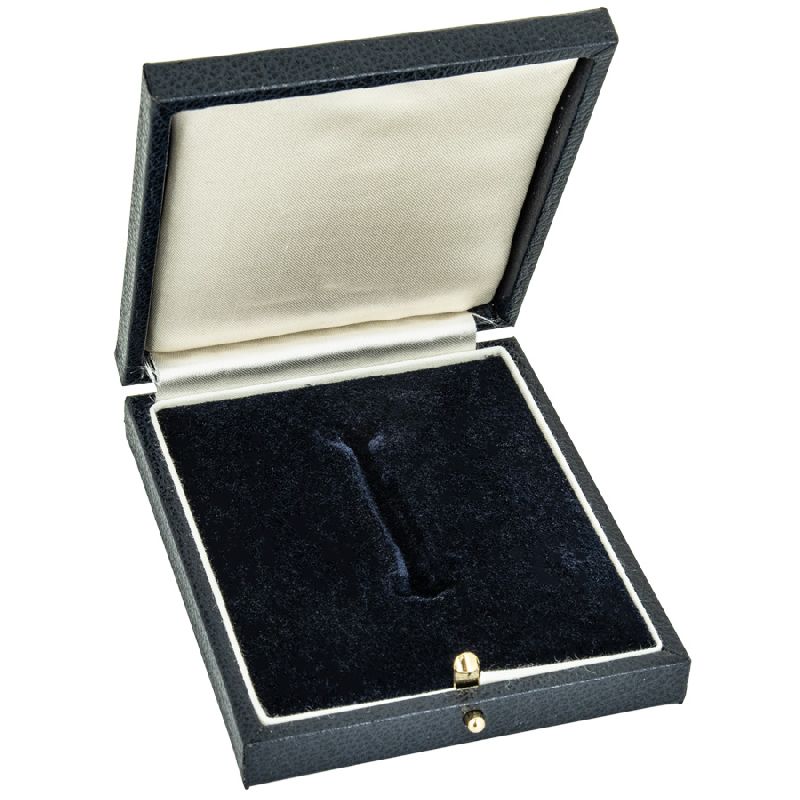 Our deluxe German WW2 style Kriegsmarine cases for badges with horizontal pins are high quality and hand crafted to wartime specifications, expertly made and covered in the correct, dark blue leatherette. The inside tops are lined in padded blue satin, and the bottom is flocked in dark blue velvet with the appropriate cut-out for the pin, and proper white "collar" around the edges. These cases will enhance any badge collection or display!