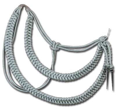 Reddick Militaria’s German WWII Officer's Aiguillette is made in high quality, aluminum-silver wire and was worn over the shoulder on both parade and service tunics. This is the 1935 Pattern, known as the Achselband or Fangschnur and authorized for wear by German Wehrmacht officers throughout WWII. It was worn by Allgemeine and Waffen SS officers up until 1938 when the new SS Pattern was introduced. Identical to the Third Reich uniform accessories they are modeled on, these are complete with metal tips.