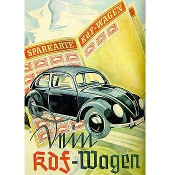 A fine reproduction of the extremely scarce 1939 German "Kleiner Prospekt" or original sales brochure designed to sell consumers on the KdFWagen (Volkswagen automobile). With full color covers, it is beautifully illustrated with over 60 rare photos of the KdF car and its features. A complete American language translation of the original German text explains the car. An English translation is provided on detachable pages inside a facsimile of the brochure, in its original color. 12 pages 10.8” x 7.8” SC