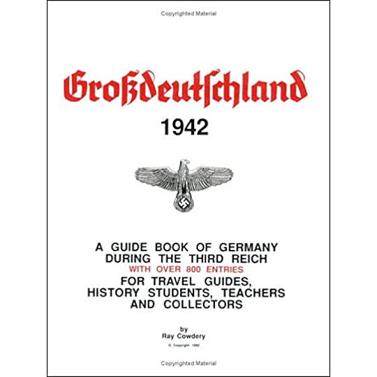 Grossdeutschland 1942: A Guide Book of Germany During the Third Reich by Ray R. Cowdery is a facsimile reprint of the 1942 directory lists actual street addresses and phone numbers of German government and paramilitary organization offices in Grossdeutschland (Greater Germany) and the occupied European countries. Over 800 entries from Gauleiters to Ministers, even including the Reichsfuhrer of the SS, Heinrich Himmler! This is a great guidebook for travelers, students of history, teachers and collectors. 24 pages. 8.5" x 11". SC