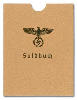 Soldbuch cases were a private purchase item, made in many different styles from Soldbuch cover material to genuine leather. Ours are made from matching or similar cover stock, with hot-stamped, embossed lettering and the appropriate eagles or SS runes.
