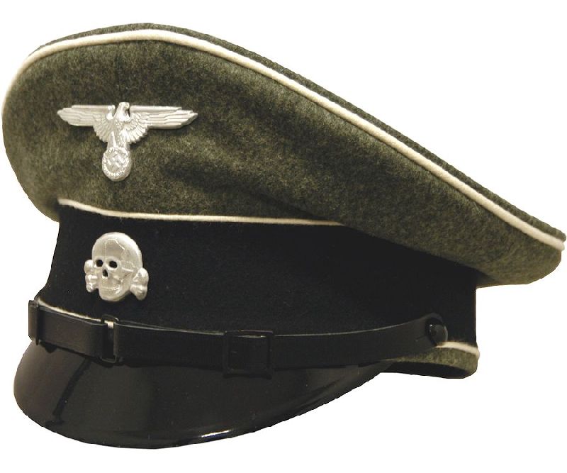 These high quality caps feature fine wool tops in field grey, black wool cap bands, white piping, genuine leather chinstraps with correct hardware, and our fine quality silver-plated or aluminum insignia. Waffen visors are the private purchase style, complete with correct, double “EREL” markings on the premier maker, Robert Lubstein.