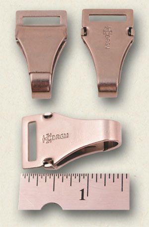 Our “Karabinerhaken” or Snap Hooks, are high quality reproductions of originals used on standard and vertical hangers of SS and SA daggers. Maker marked on the reverse with the well-known “A” of the F.W. Assmann & Sohne firm, along with the “DRGM” patent marking. Made from nickel plated steel.
