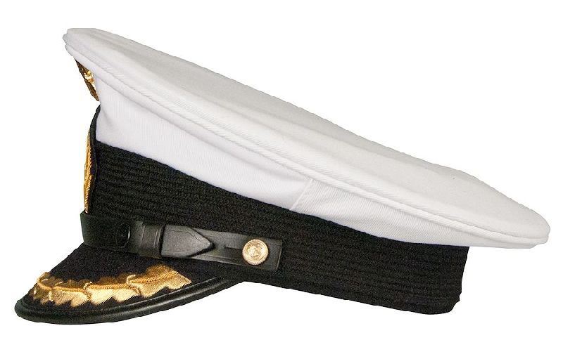 Our white-top Kriegsmarine visors were made famous by the highly popular U-boat commanders and are offered in Captain rank, which feature hand embroidered bullion visors and wreaths, gold metal cap eagles and side buttons, patent leather chinstraps, ribbed mohair cap bands, white cotton tops, and white satin linings with double “Erel” markings and the Kriegsmrine “O.K.K. Berlin” marking.