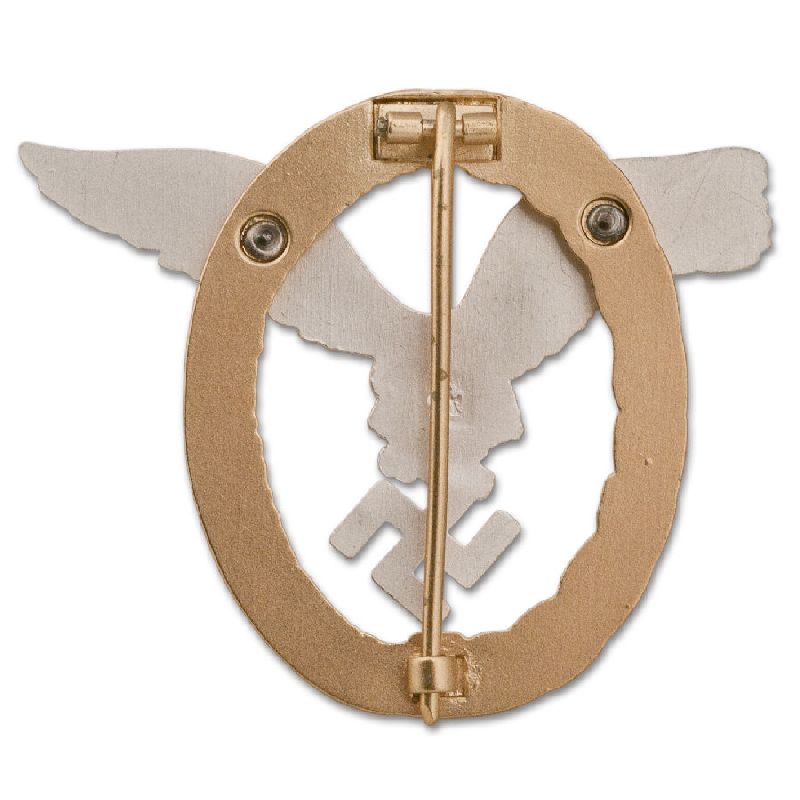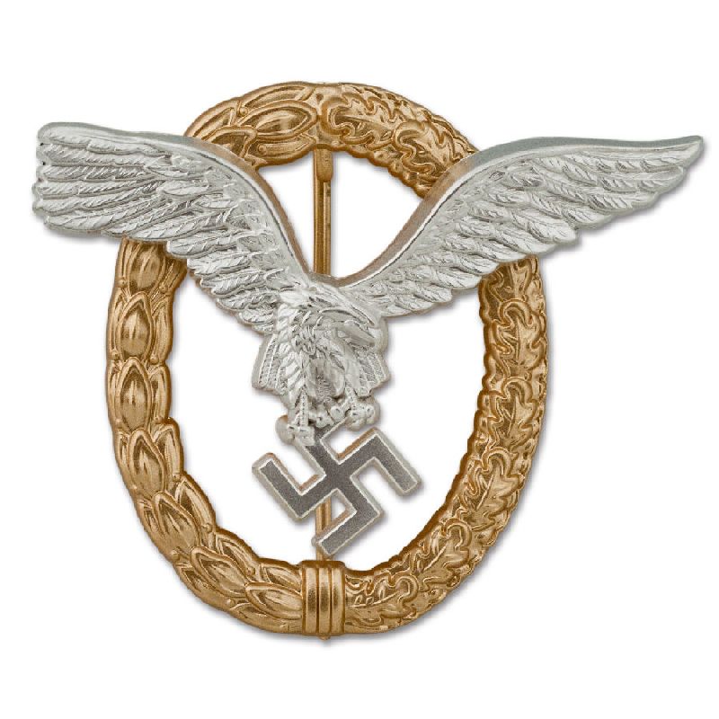 This two-piece badge is top quality. Die-struck with exquisite details that rivals the originals, with the correct type pin and catch, sets this apart from the many cheaper reproductions on the market. The eagle is finished in frosted silver with burnished silver highlights and is beautifully accentuated by the gilt wreath of oak and laurel leaves. Complete with F.W. Assmann stylized "A" maker mark.