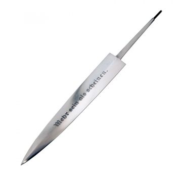 Reddick Militaria's NPEA Dagger blades feature the standard motto, "Mehr sein als Scheinen" and the correct Carl Eickhorn small oval proofmark. These make fine replacements for missing or damaged blades, with deeply etched mottos, a fine polished finish and proper M-4 threaded tangs. We developed these excellent quality blades when our Solingen maker ended production.