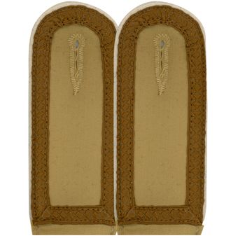For Afrikakorps and Tropical Army uniforms, these shoulder boards are nicely made using correct, olive tan cotton cloth, copper brown diamond pattern Tresse and white piping. Other ranks can be made by adding one or two rank pips as required available separately.