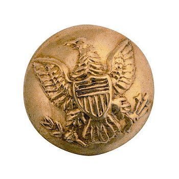 Our Union Eagle Military Buttons are two-piece, made in genuine brass with the large size marked "Scovill Mfg. Co." Standard U.S. Military issue in the late 18th and early 19th centuries, these are authentic reproductions that were used on both military and non-military clothing items, bags, pouches and more.