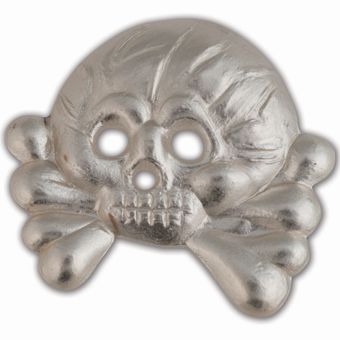 Our silver plated jawless skull for Panzer collar tabs has excellent details and is the finest quality we've ever produced. It has a hollow back with 2 flat metal prong attachments.
