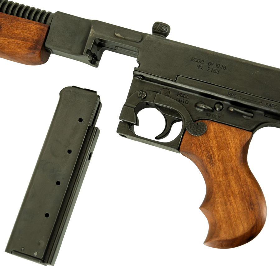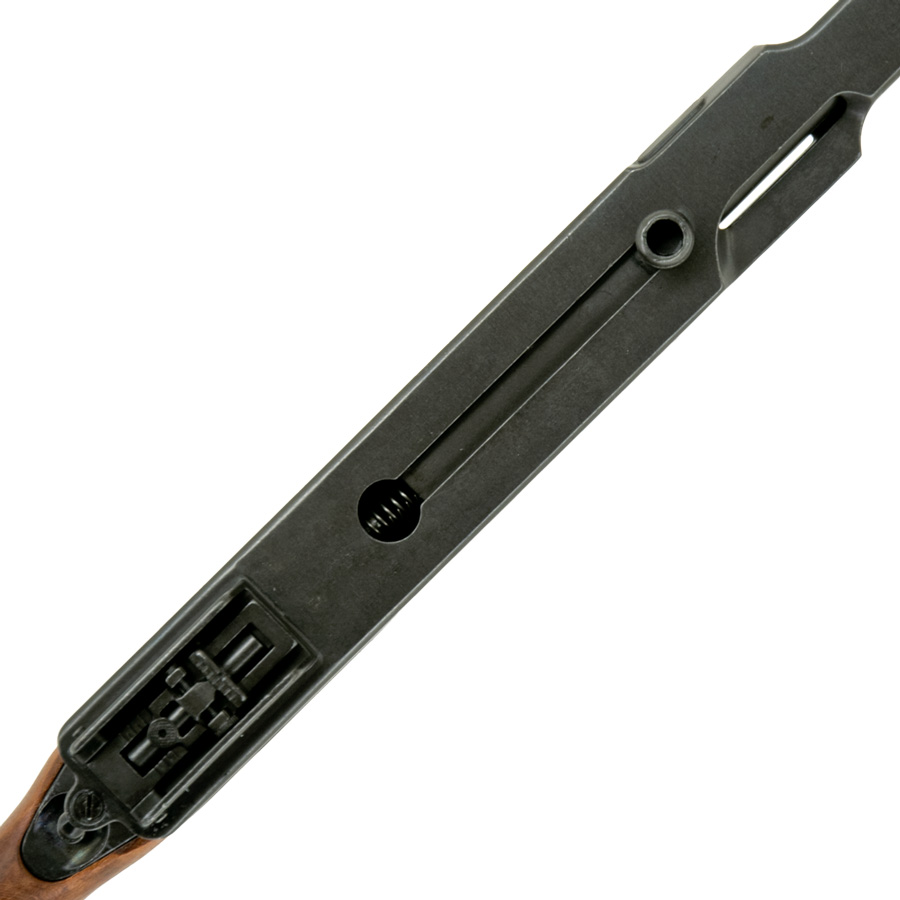 This classic non-firing replica is made of metal with high quality, genuine wood stock and fore end. Out of production for several years, this military model differs from the original commercial model in its 20 round magazine and horizontal foregrip.